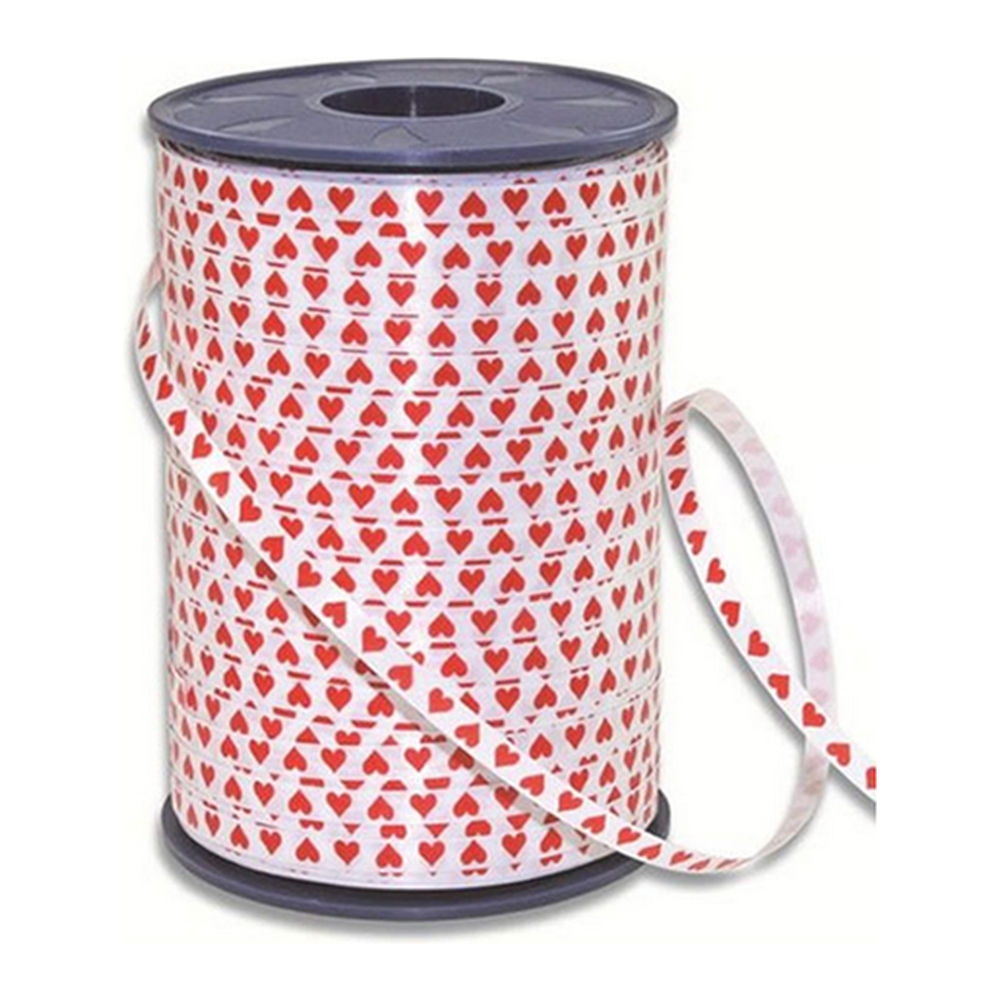 Band – Weiß mit roten Herzen – 5 mm x 500 m – pro Rolle